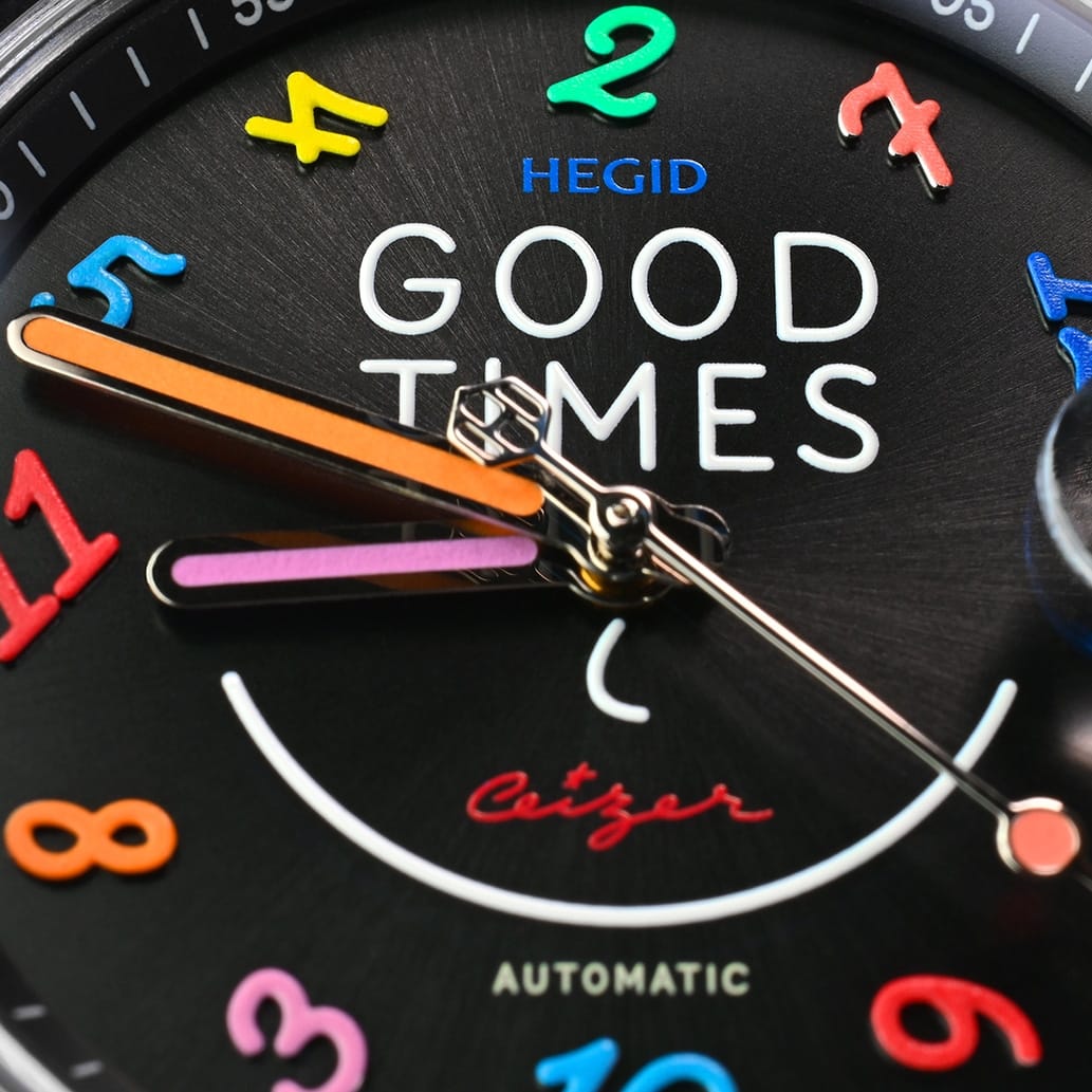 Hegid is pleased to present the second artistic collaboration in its history: ‘GOOD TIMES’. Born from the encounter between Hegid’s durable watchmaking and the colorful typographic universe of artist Pieter Ceizer, this limited edition invites us not just to endure time, but to celebrate it with a smile.