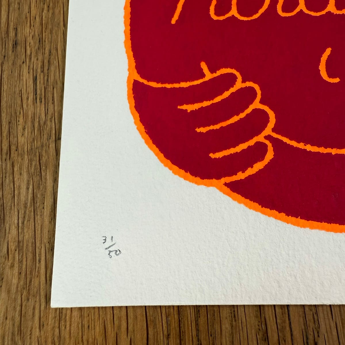2 colors screen print, printed on 300 gs acid-free Hahnemulle paper, 15 x 15 cm, edition of 50 pieces, all numbered and signed.