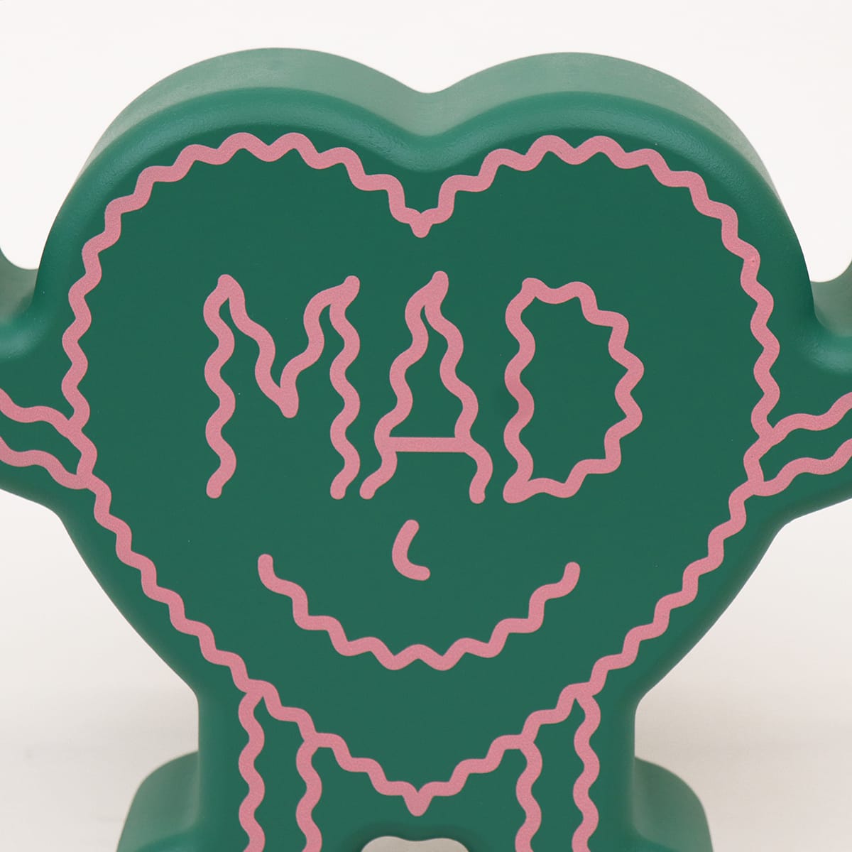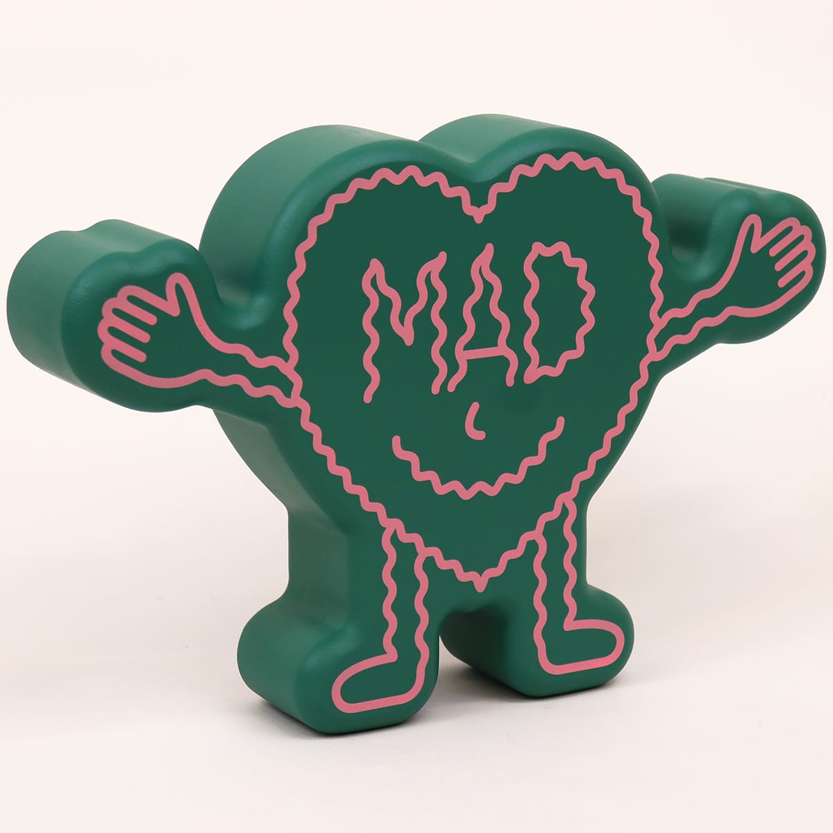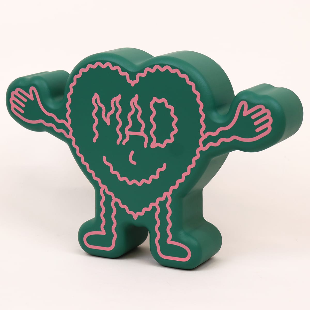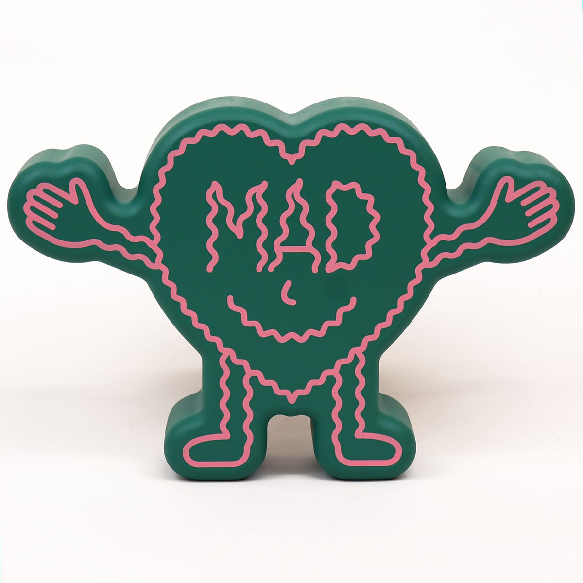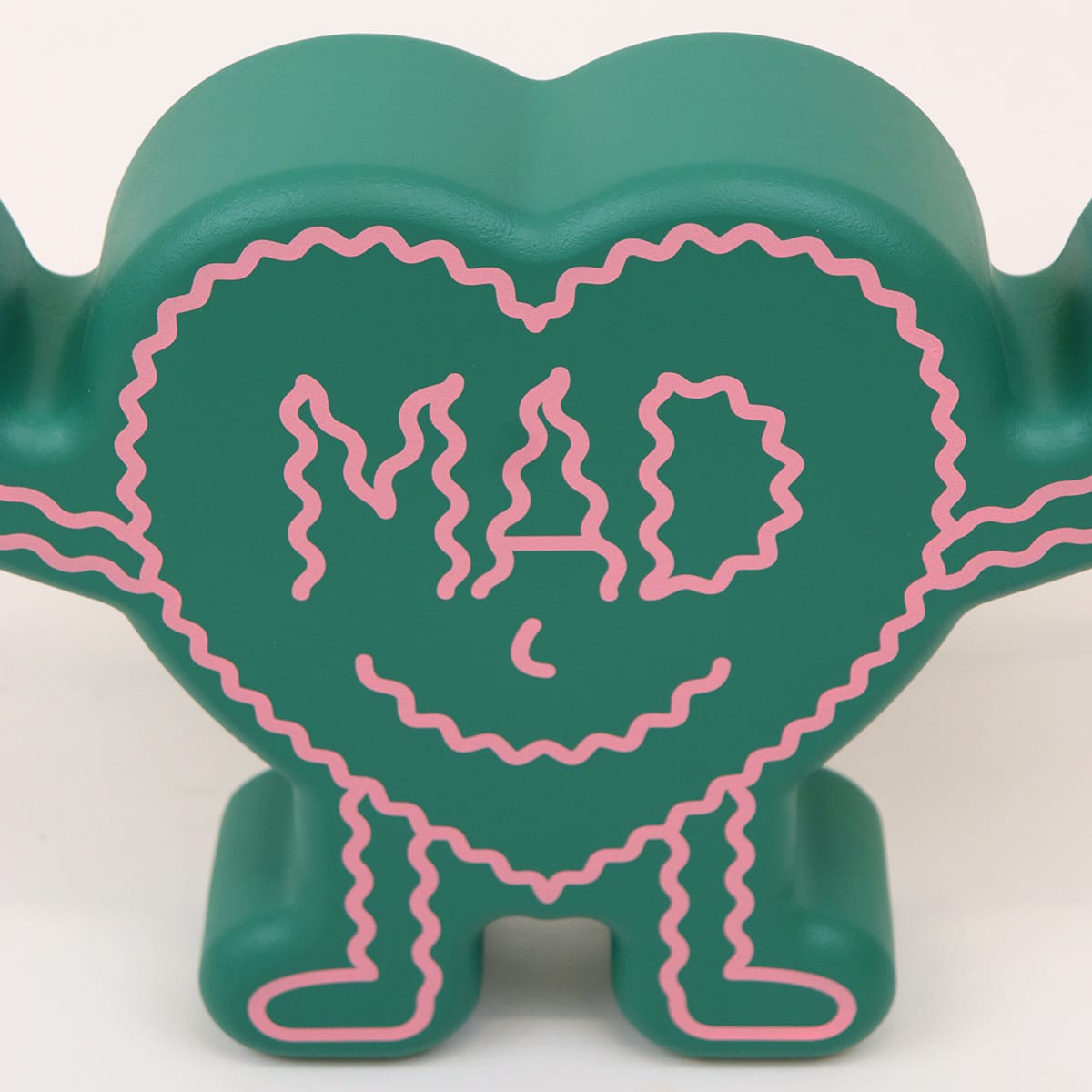 The world gone mad, but we still got love, mad love. The front of this heart-shaped humanoid figurine reads ‘MAD’, the back reads Love.
