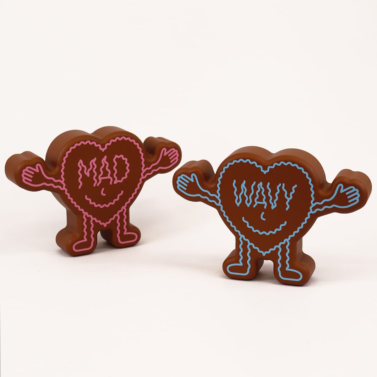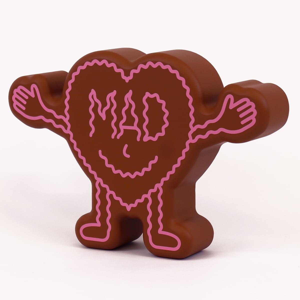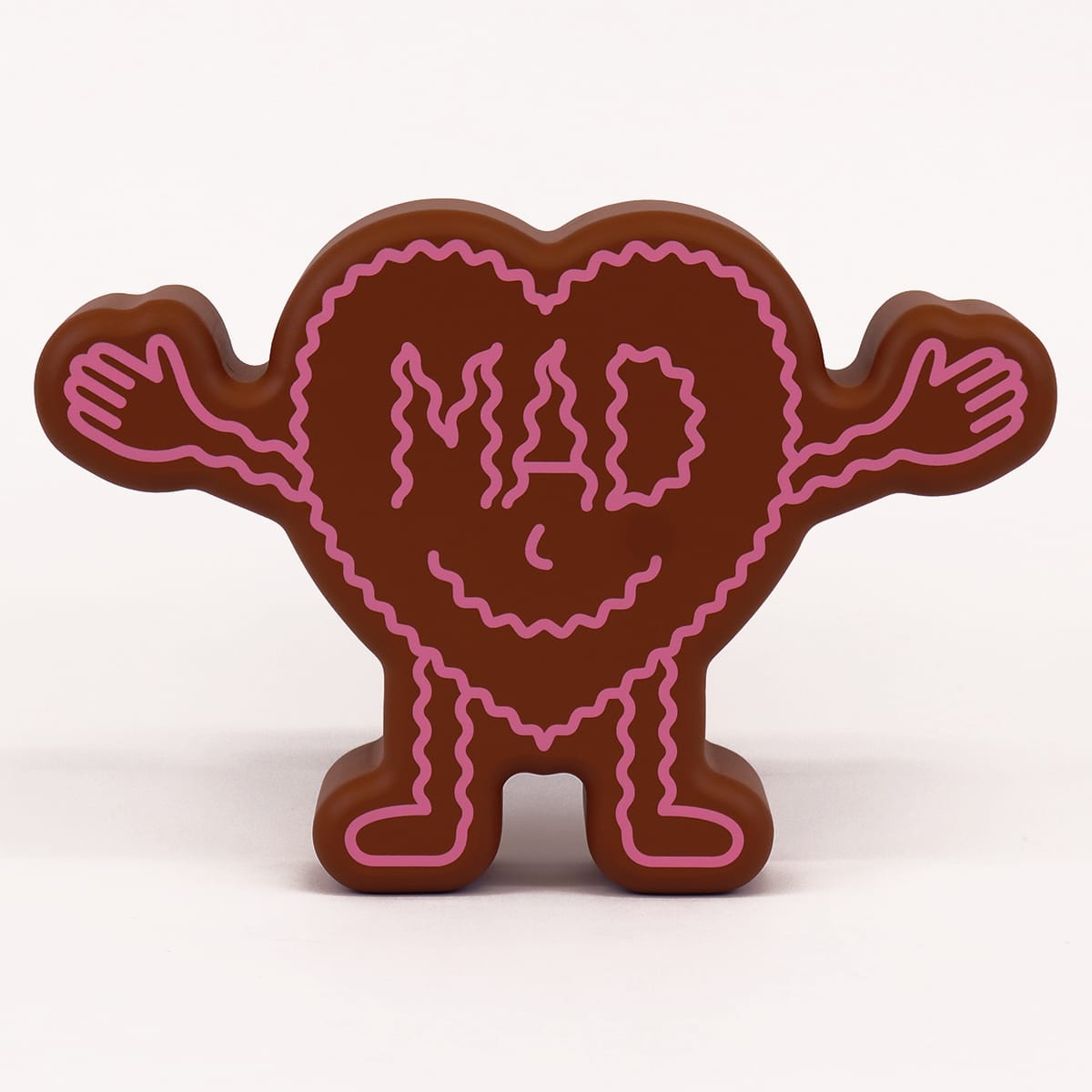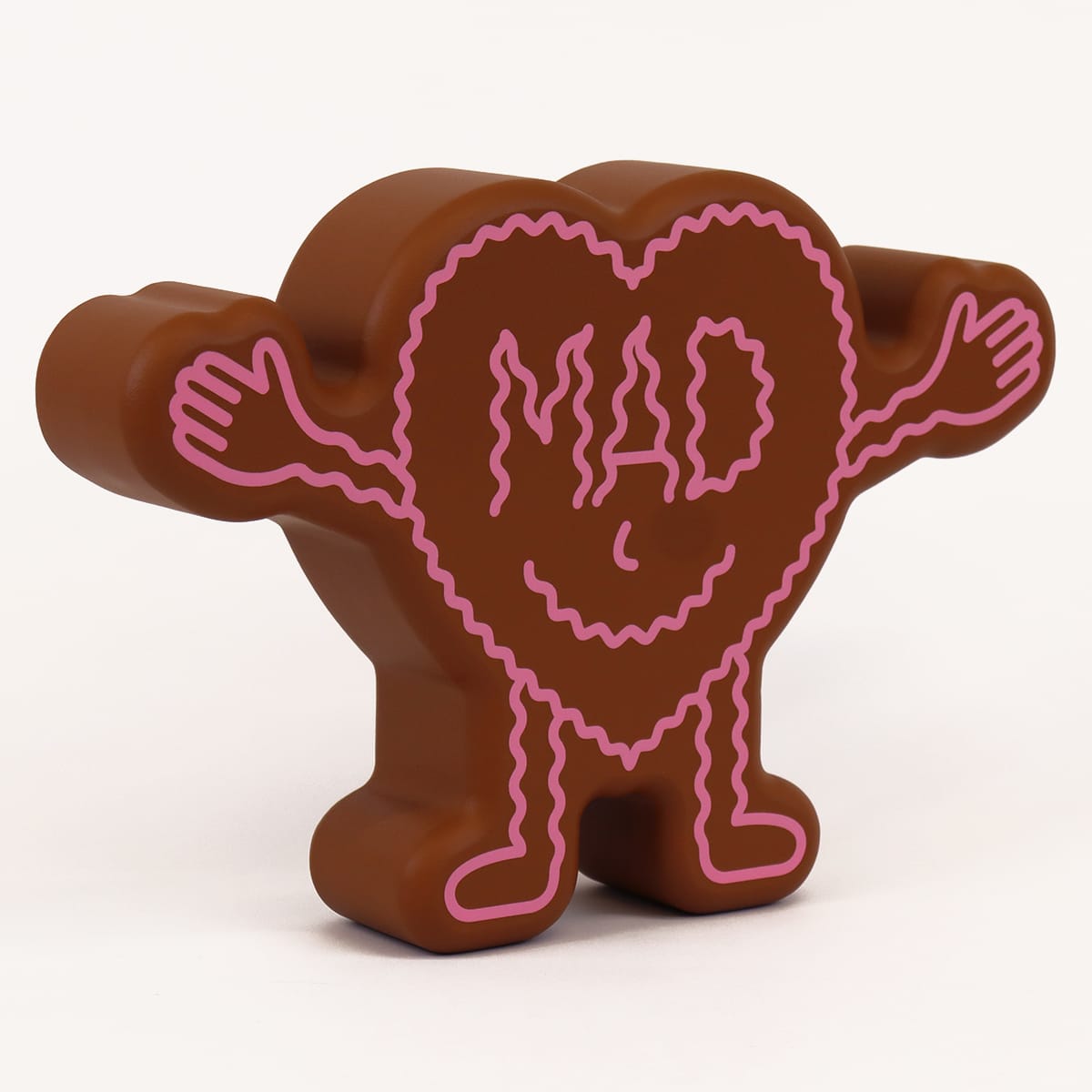 The front of this heart-shaped humanoid figurine reads ‘MAD’, the back reads ‘WAVY’ (IYKYK).