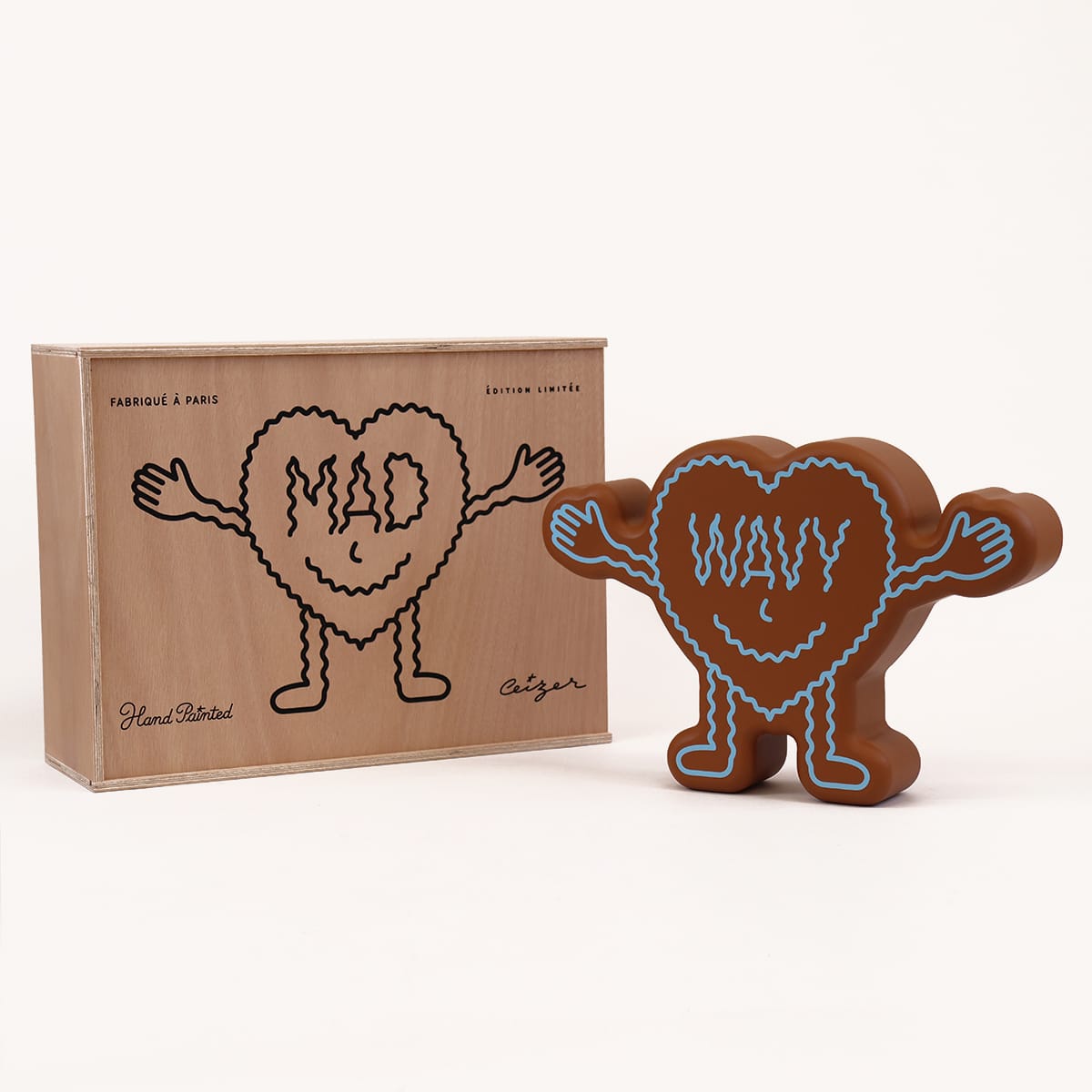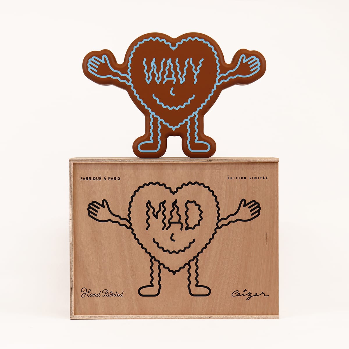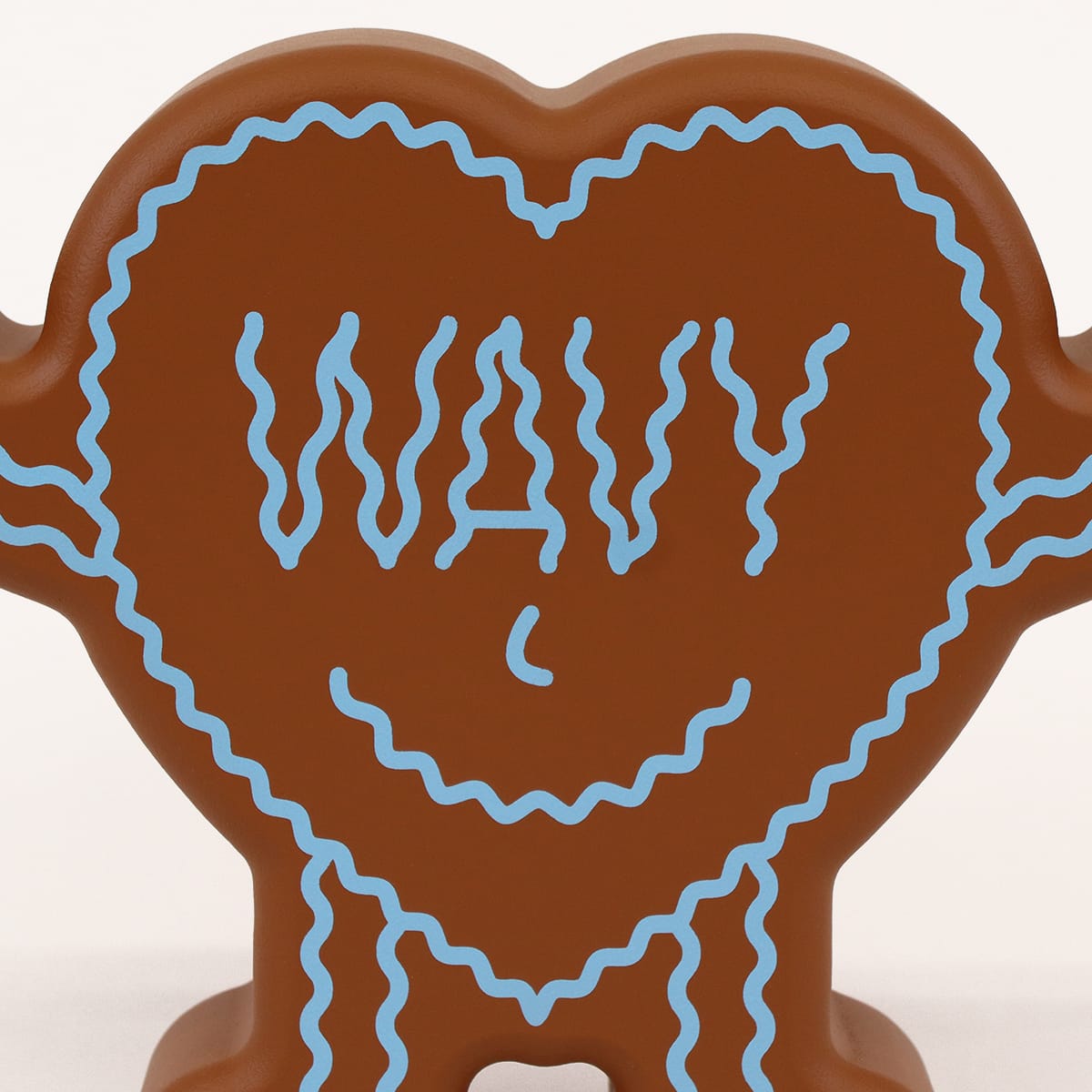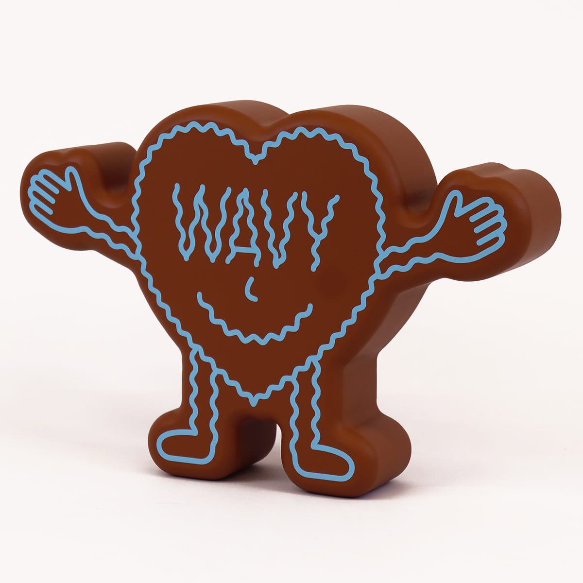 The front of this heart-shaped humanoid figurine reads ‘MAD’, the back reads ‘WAVY’ (IYKYK).