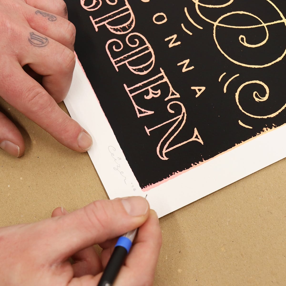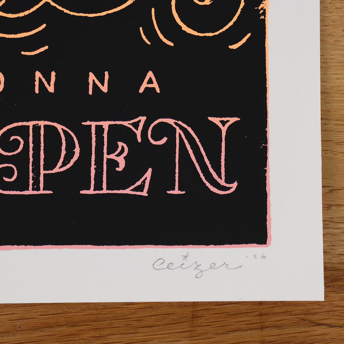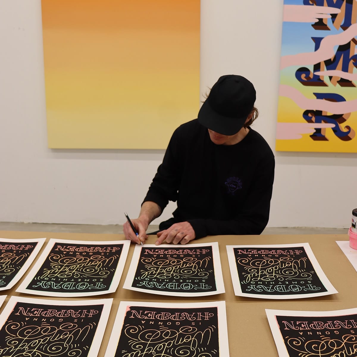 5 colors screen print with a gradient background, printed on 300gs acid-free Hahnemulle paper, 30×40 cm, edition of 44 pieces, all numbered and signed.